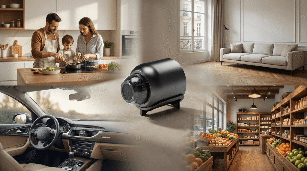 J’ai simplement posé la mini caméra sur une étagère de mon salon — elle est si petite et discrète que personne ne la remarque. Et comme ça, en quelques secondes, j’ai pu vérifier ce qui se passait chez moi à tout moment via l’application sur mon téléphone.